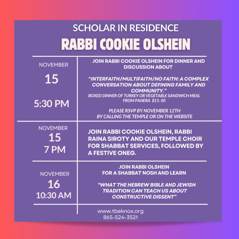 Dinner & Discussion w/Rabbi Cookie Olshein